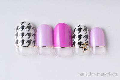 コメント秋の千鳥格子ネイル1|パープルの逆フレンチをメインに千鳥格子柄をアートしました。